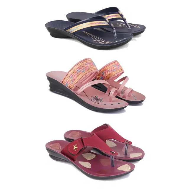 Combo of Flats & Heels for Women, Set of 3 (Multicolor, 7)