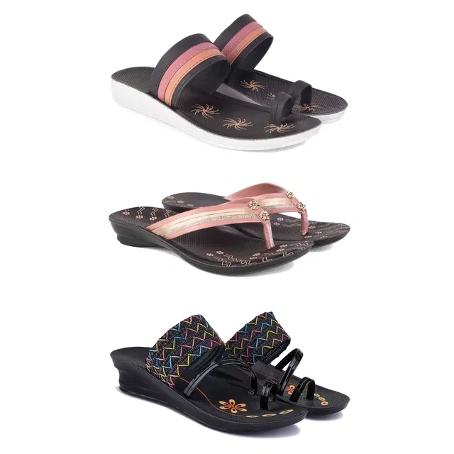 Combo of Flats & Heels for Women, Set of 3 (Multicolor, 7)