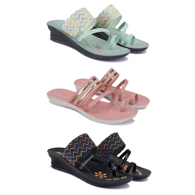 Combo of Flats & Heels for Women, Set of 3 (Multicolor, 8)