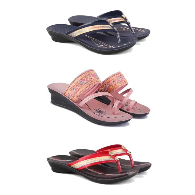 Combo of Flats & Heels for Women, Set of 3 (Multicolor, 8)