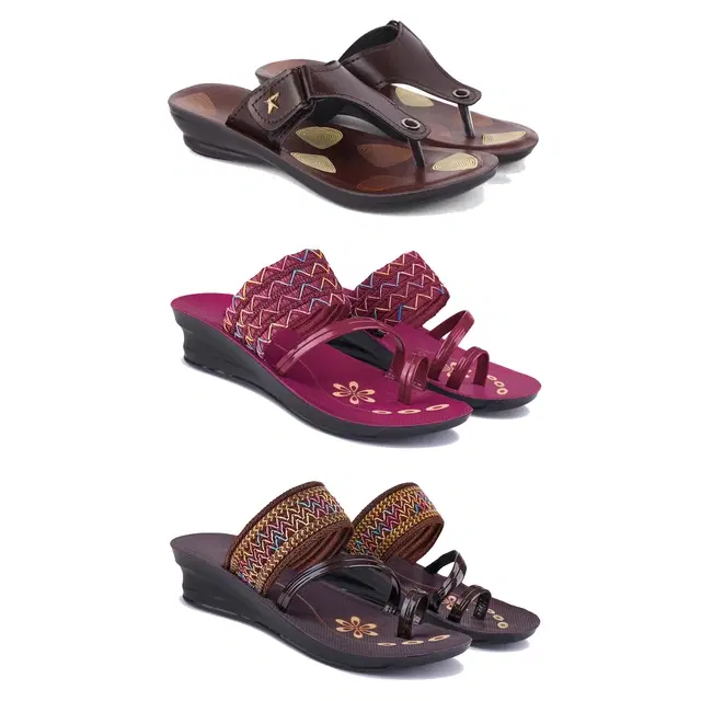 Combo of Flats & Heels for Women, Set of 3 (Multicolor, 8)