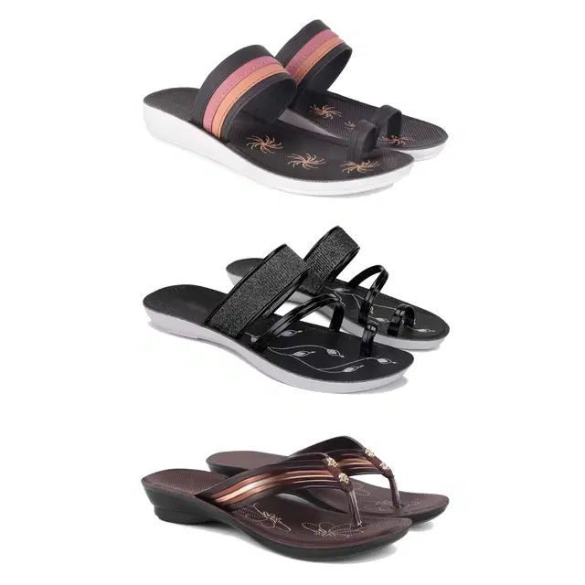 Combo of Flats & Heels for Women, Set of 3 (Multicolor, 8)