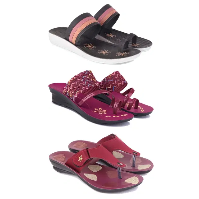 Combo of Flats & Heels for Women, Set of 3 (Multicolor, 8)