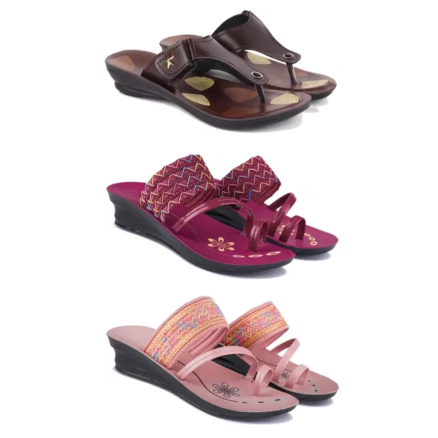 Combo of Flats & Heels for Women, Set of 3 (Multicolor, 8)
