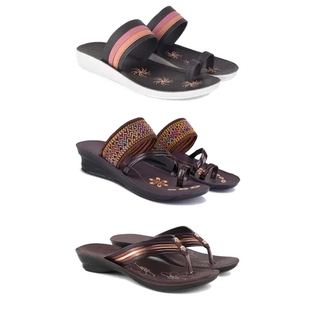Combo of Flats & Heels for Women, Set of 3 (Multicolor, 8)