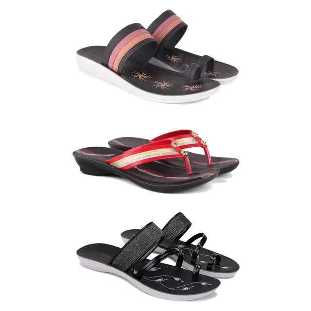 Combo of Flats & Heels for Women, Set of 3 (Multicolor, 8)