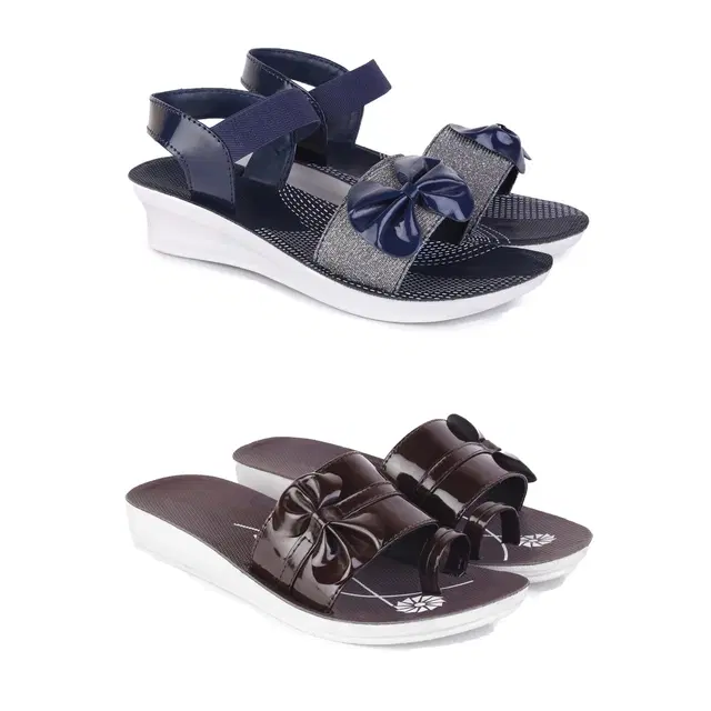 Combo of Flats & Sandals for Women, Set of 2 (Multicolor, 6)