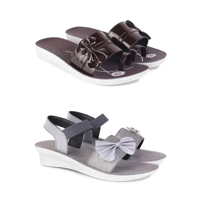 Combo of Flats & Sandals for Women, Set of 2 (Multicolor, 6)