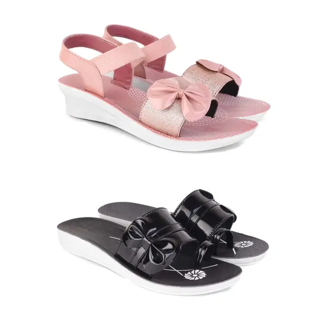 Combo of Flats & Sandals for Women, Set of 2 (Multicolor, 8)