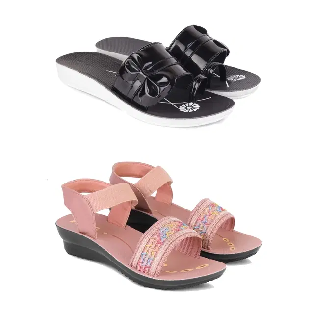Combo of Flats & Sandals for Women, Set of 2 (Multicolor, 8)