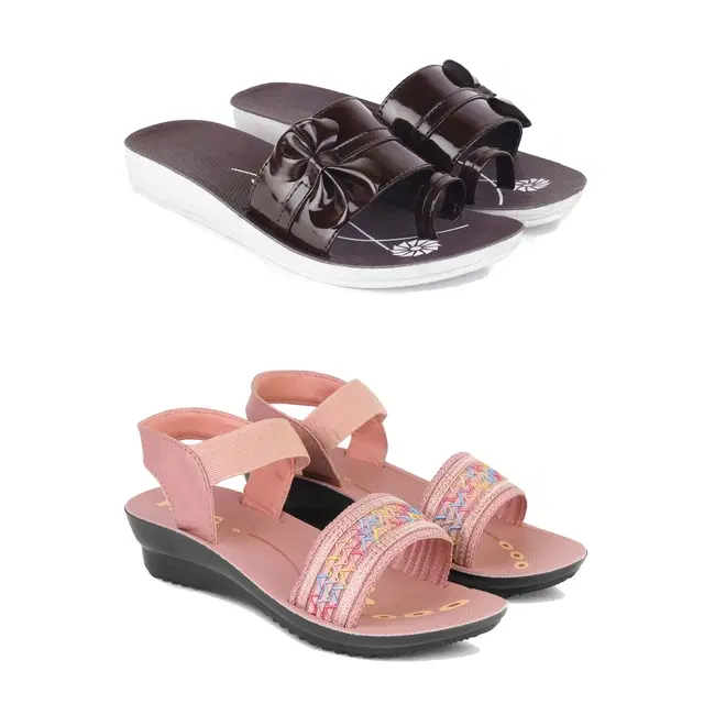 Combo of Flats & Sandals for Women, Set of 2 (Multicolor, 8)