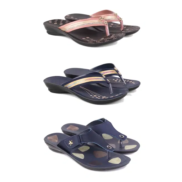 Combo of Flats & Slippers for Women, Set of 3 (Multicolor, 5)