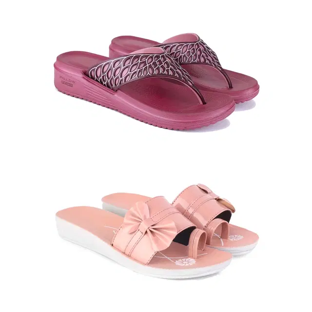 Combo of Flats & Slippers for Women, Set of 2 (Multicolor, 6)