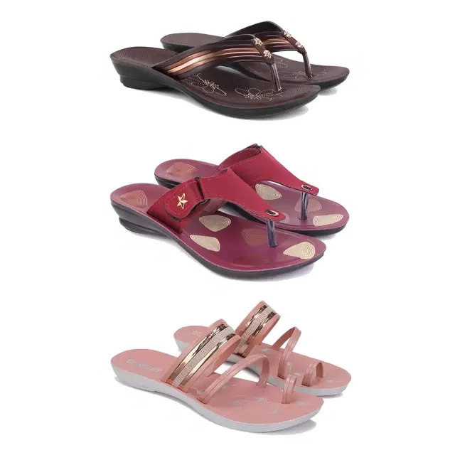 Combo of Flats & Slippers for Women, Set of 3 (Multicolor, 6)