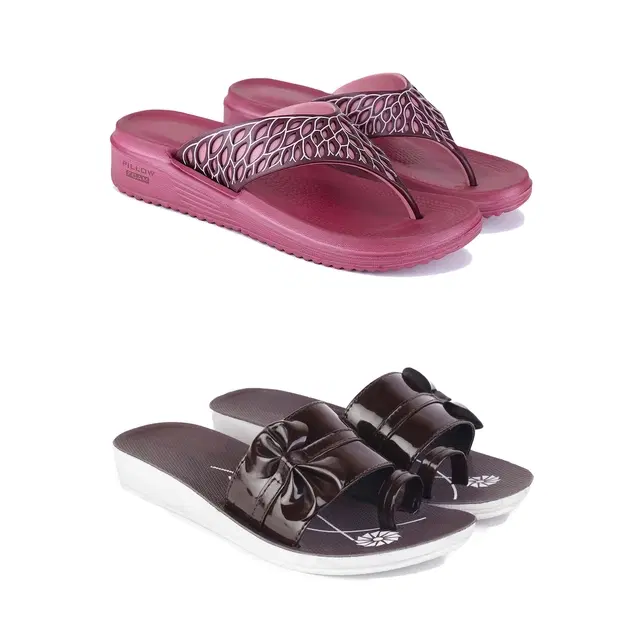 Combo of Flats & Slippers for Women, Set of 2 (Multicolor, 7)