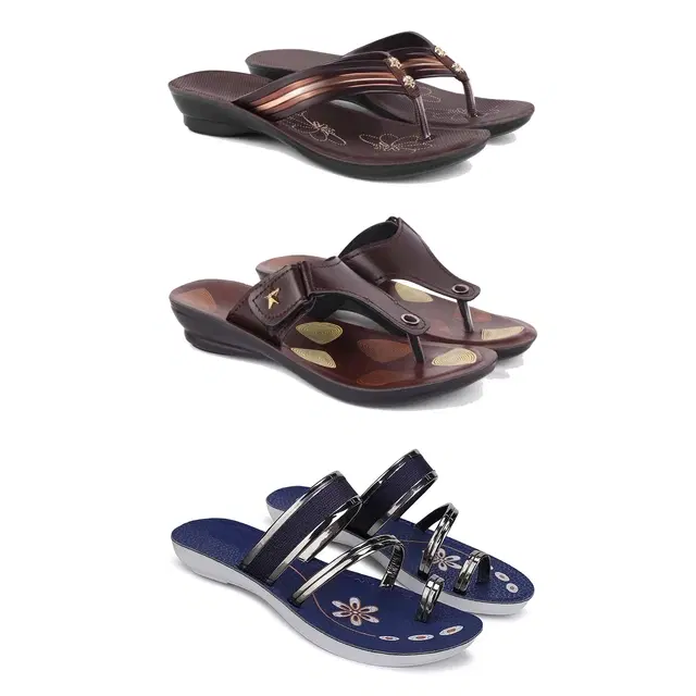 Combo of Flats & Slippers for Women, Set of 3 (Multicolor, 7)