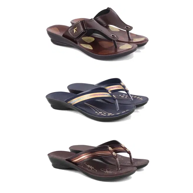 Combo of Flats & Slippers for Women, Set of 3 (Multicolor, 7)