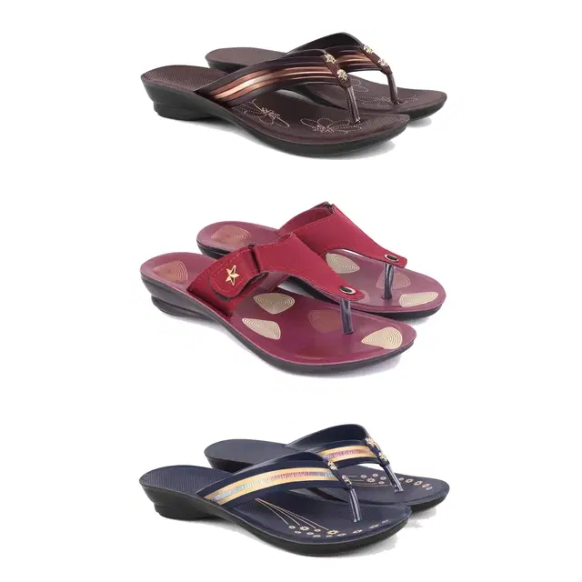 Combo of Flats & Slippers for Women, Set of 3 (Multicolor, 7)