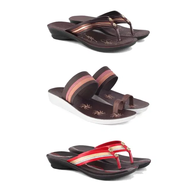 Combo of Flats & Slippers for Women, Set of 3 (Multicolor, 7)