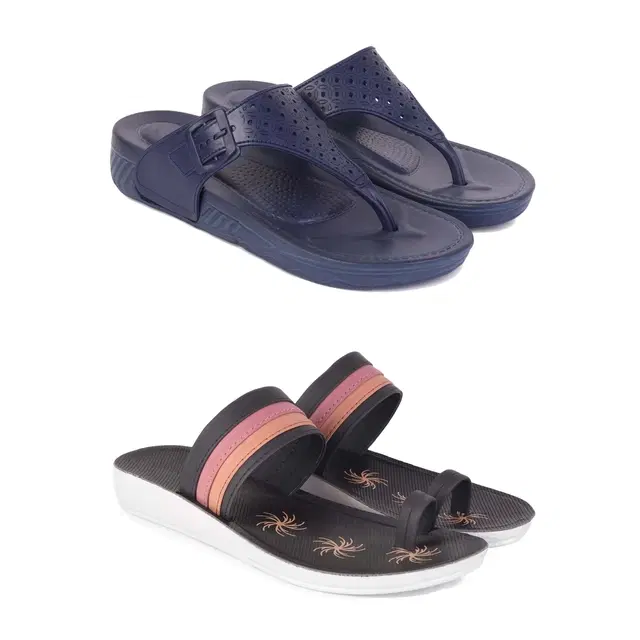Combo of Flats & Slippers for Women, Set of 2 (Multicolor, 8)