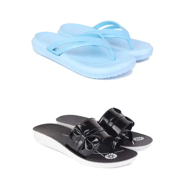 Combo of Flats & Slippers for Women, Set of 2 (Multicolor, 8)
