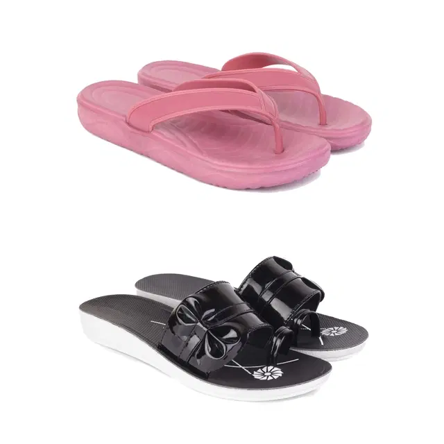Combo of Flats & Slippers for Women, Set of 2 (Multicolor, 8)