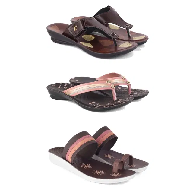 Combo of Flats & Slippers for Women, Set of 3 (Multicolor, 8)