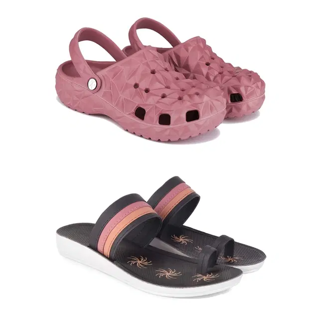 Combo of Flats with Clogs for Women, Set of 2 (Multicolor, 5)