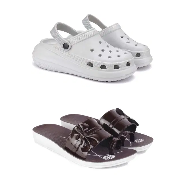 Combo of Flats with Clogs for Women, Set of 2 (Multicolor, 6)