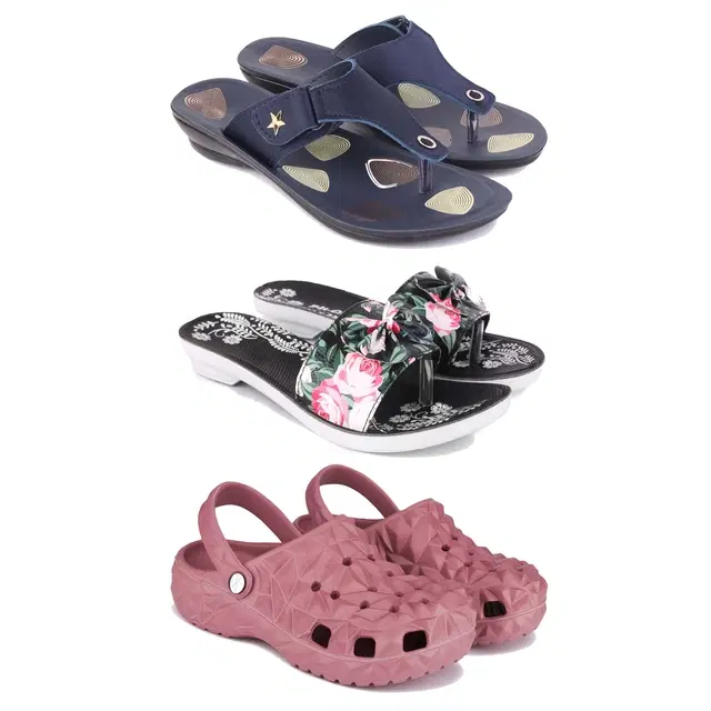 Combo of Flats with Clogs for Women, Set of 3 (Multicolor, 6)