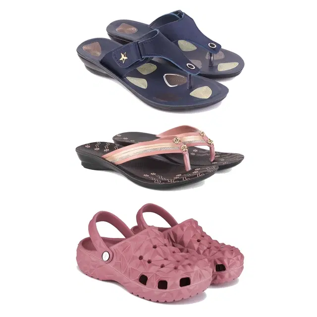 Combo of Flats with Clogs for Women, Set of 3 (Multicolor, 6)