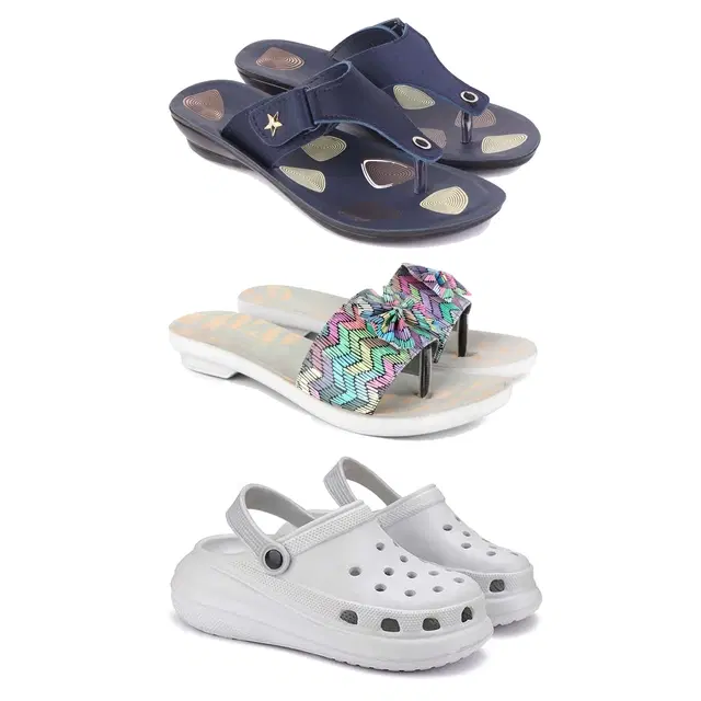 Combo of Flats with Clogs for Women, Set of 3 (Multicolor, 6)