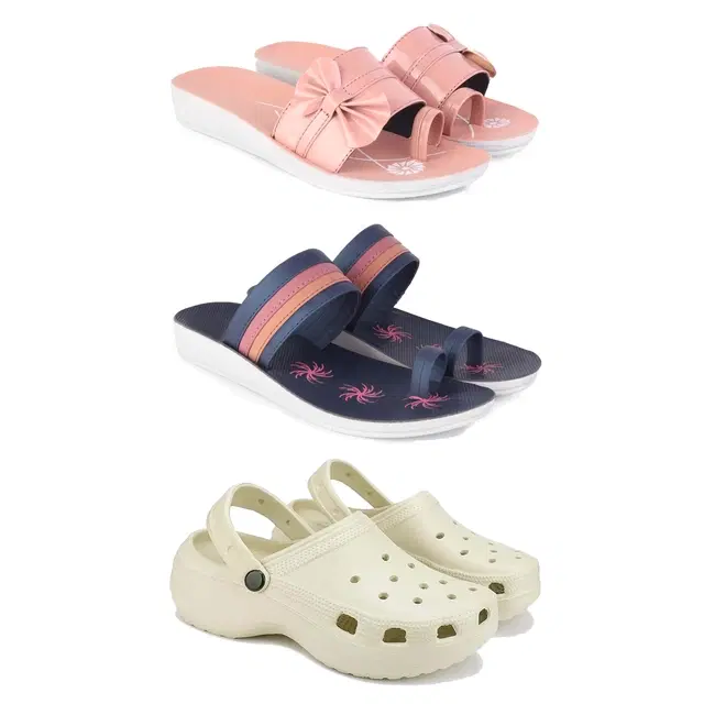 Combo of Flats with Clogs for Women, Set of 3 (Multicolor, 6)