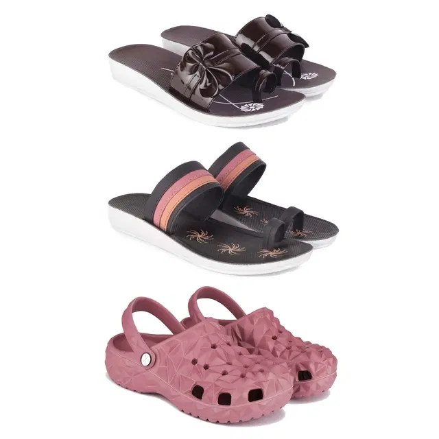 Combo of Flats with Clogs for Women, Set of 3 (Multicolor, 6)