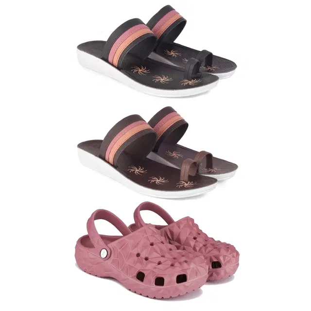 Combo of Flats with Clogs for Women, Set of 3 (Multicolor, 6)