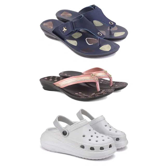 Combo of Flats with Clogs for Women, Set of 3 (Multicolor, 6)