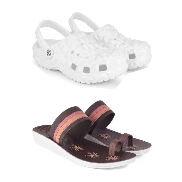 Combo of Flats with Clogs for Women, Set of 2 (Multicolor, 7)