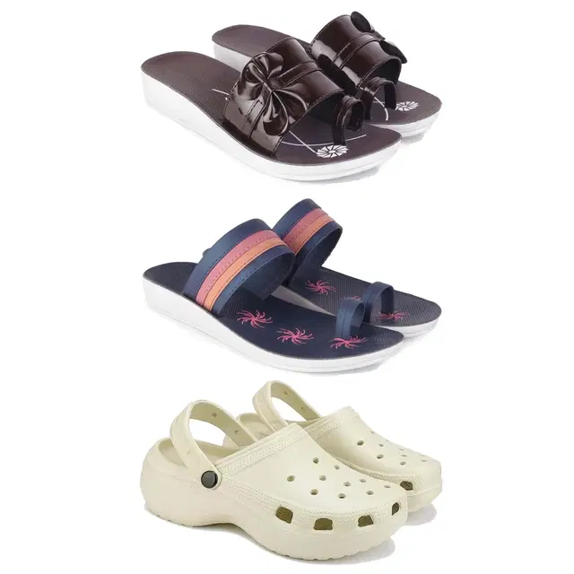 Combo of Flats with Clogs for Women, Set of 3 (Multicolor, 7)