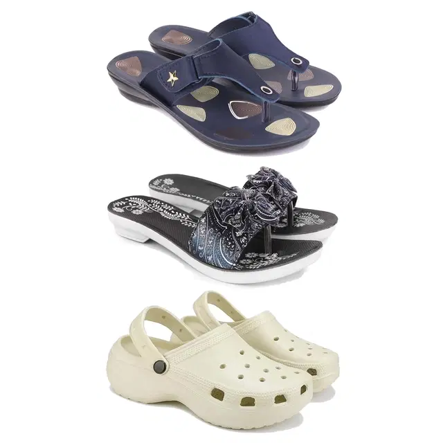 Combo of Flats with Clogs for Women, Set of 3 (Multicolor, 7)