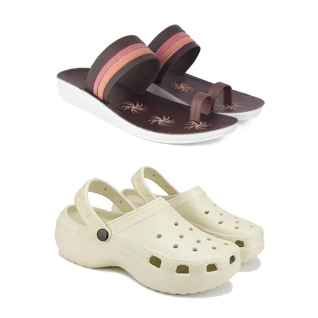 Combo of Flats with Clogs for Women, Set of 2 (Multicolor, 8)