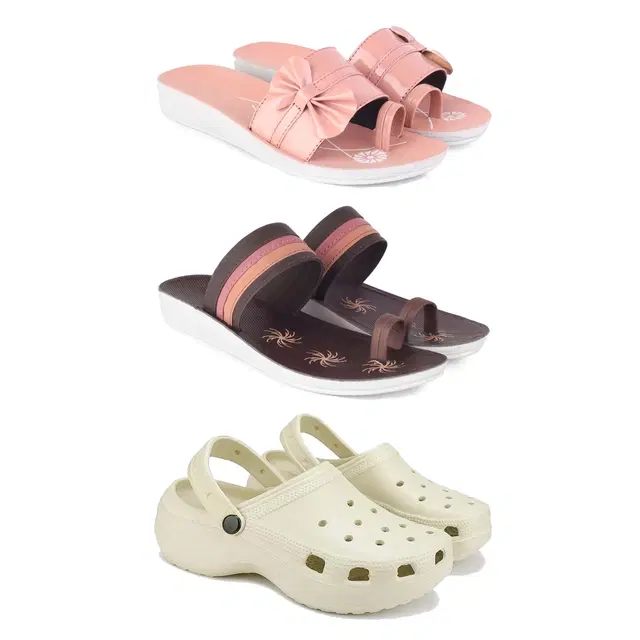 Combo of Flats with Clogs for Women, Set of 3 (Multicolor, 8)