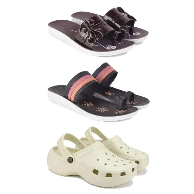 Combo of Flats with Clogs for Women, Set of 3 (Multicolor, 8)