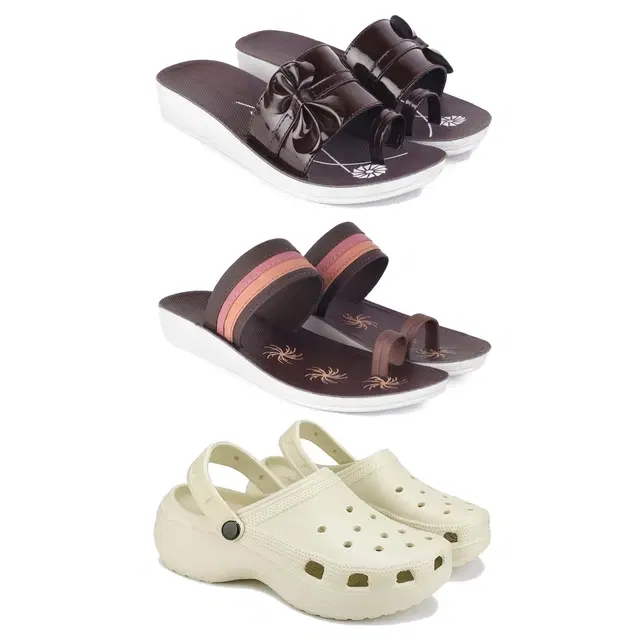 Combo of Flats with Clogs for Women, Set of 3 (Multicolor, 8)