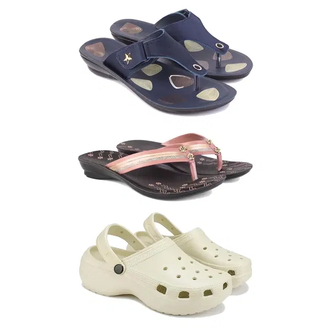 Combo of Flats with Clogs for Women, Set of 3 (Multicolor, 8)