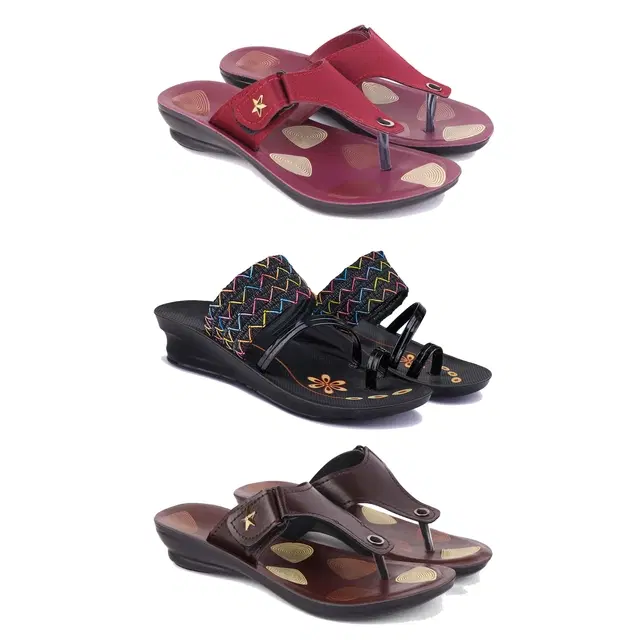 Combo of Flats with Heels for Women, Set of 3 (Multicolor, 6)