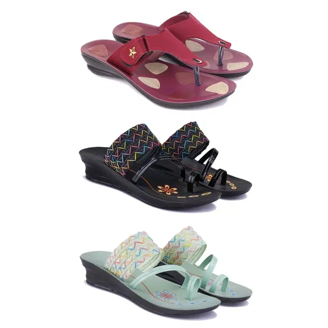 Combo of Flats with Heels for Women, Set of 3 (Multicolor, 6)