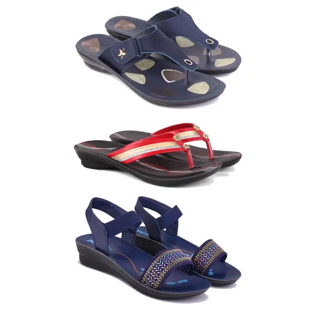 Combo of Flats with Sandals for Women, Set of 3 (Multicolor, 8)