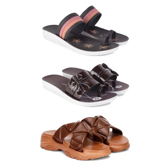Combo of Flats with Sandals for Women, Set of 3 (Multicolor, 8)