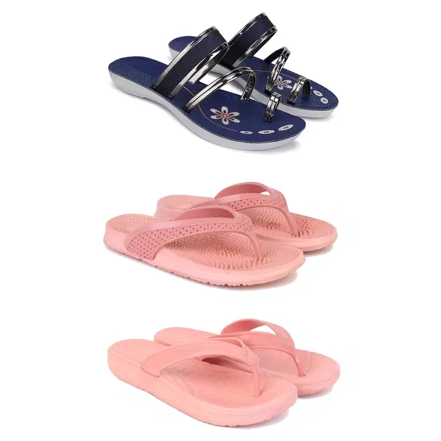 Combo of Flats with Slippers for Women (Multicolor, 5) (Pack of 3)
