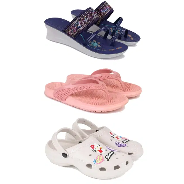 Combo of Heels with Slippers & Clogs for Women (Multicolor, 8) (Pack of 3)